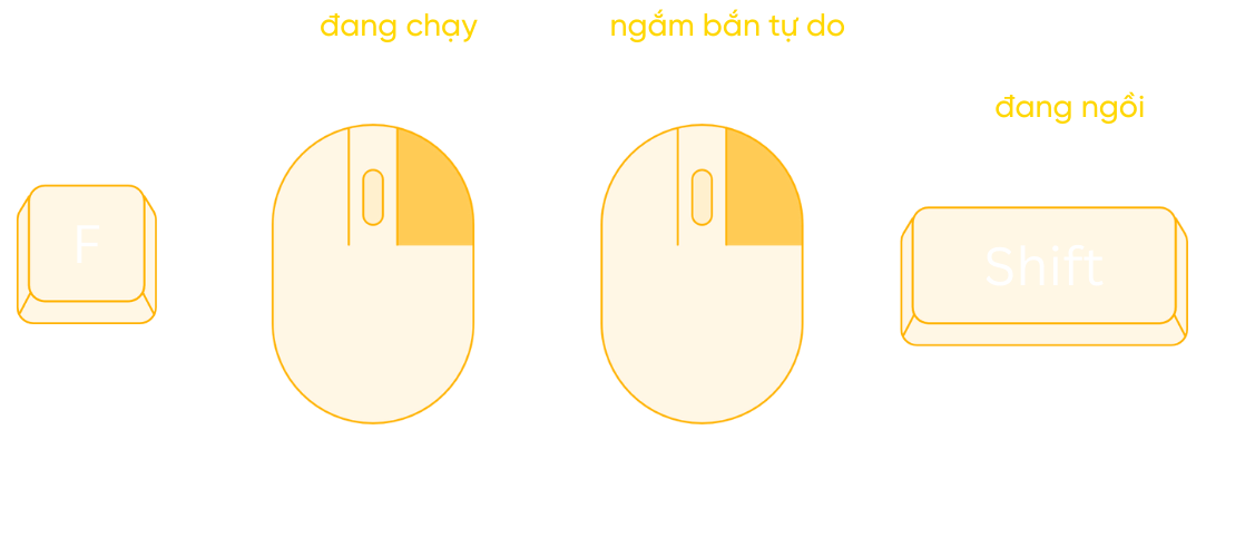 Dưới đây là danh sách điều khiển cơ bản dành cho bàn phím và chuột, các điều khiển nâng cao cho các chế độ đặc biệt sẽ được đề cập ở những phần tiếp theo.